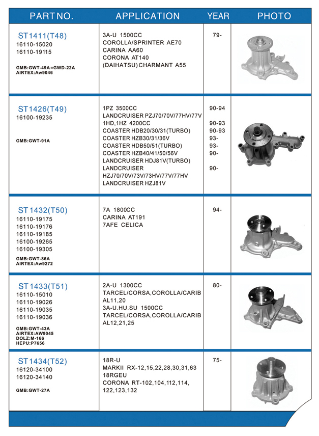 Water pump list