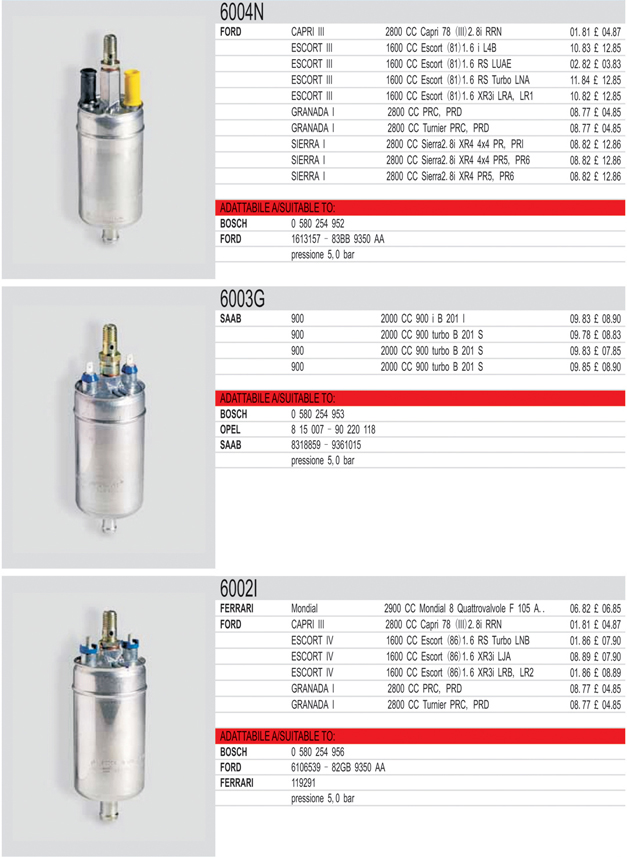Mechanical fuel pump list