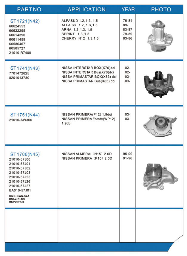 Water pump list