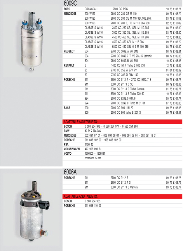 Mechanical fuel pump list