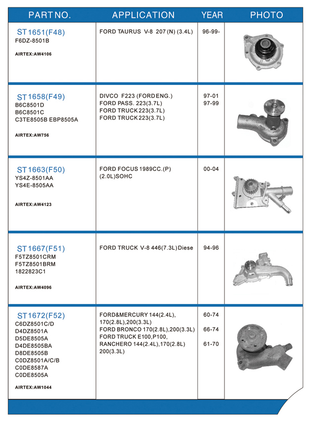 Water pump list