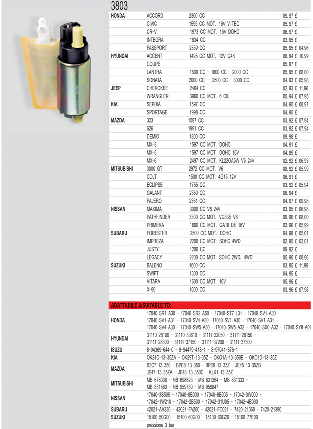 Mechanical fuel pump list