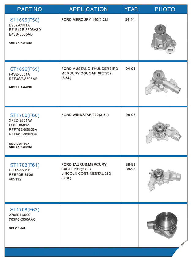 Water pump list