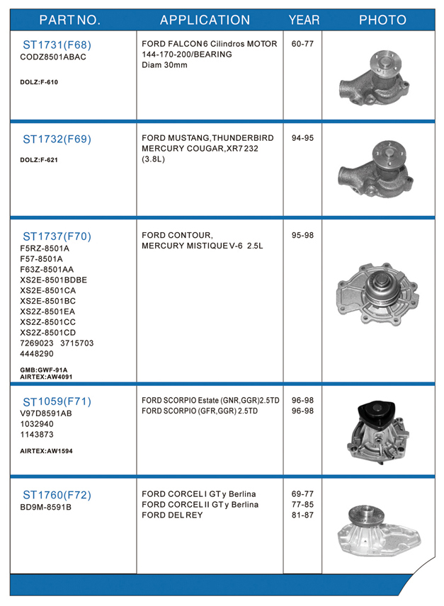 Water pump list