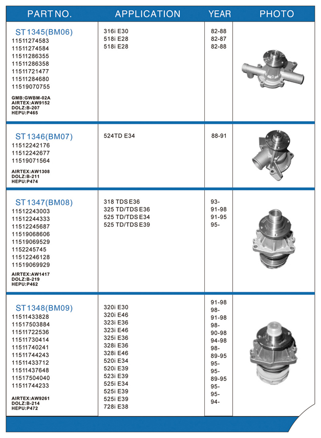 Water pump list