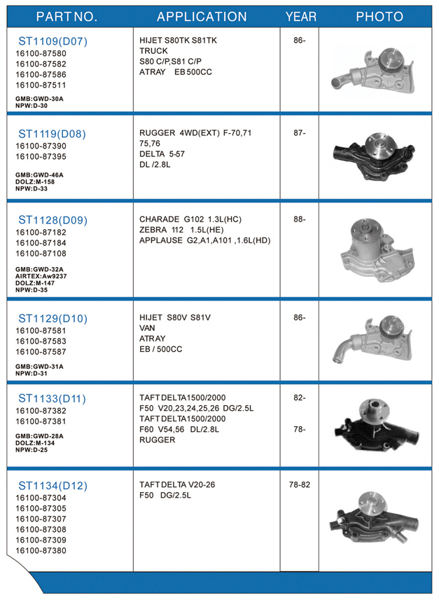 Water pump list