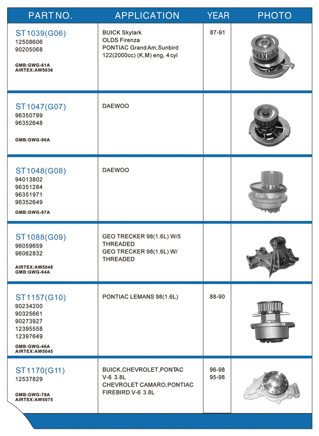 Water pump list