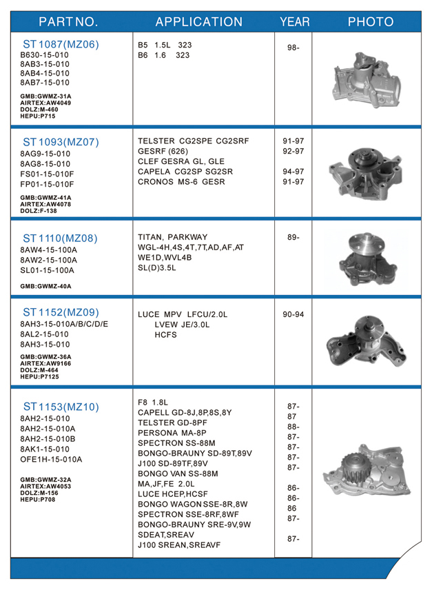 Water pump list