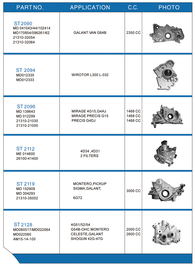 Oil pump list