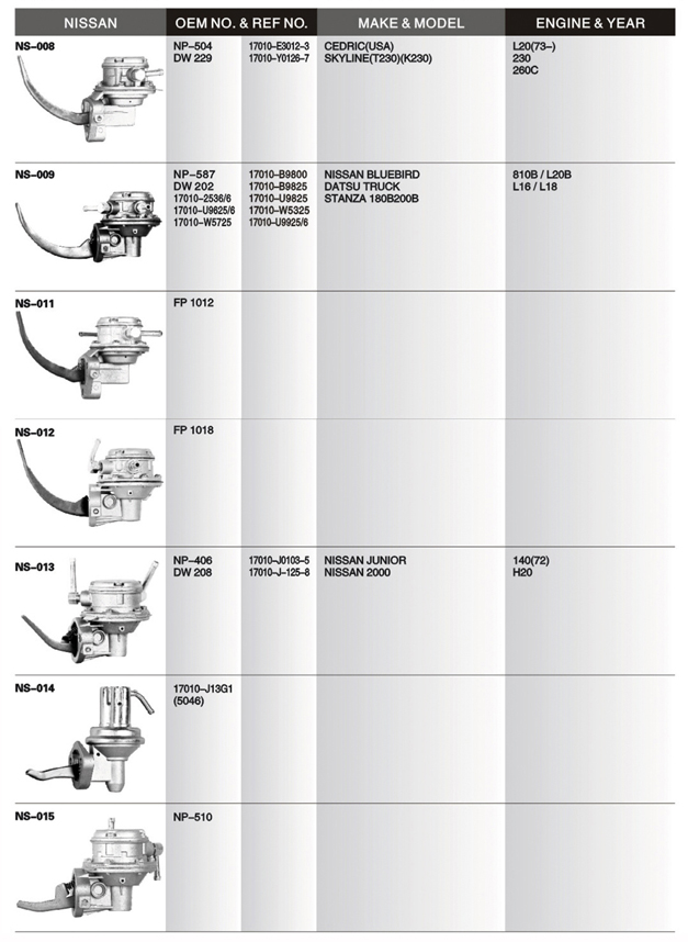 Mechanical fuel pump list