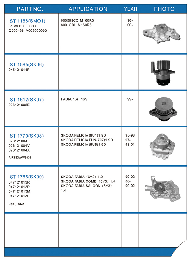 Water pump list