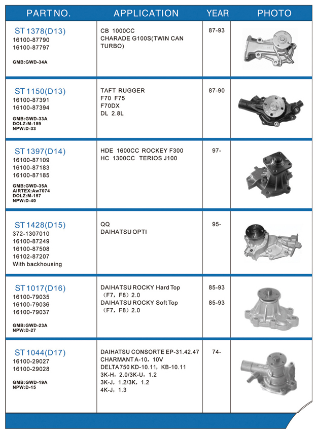 Water pump list