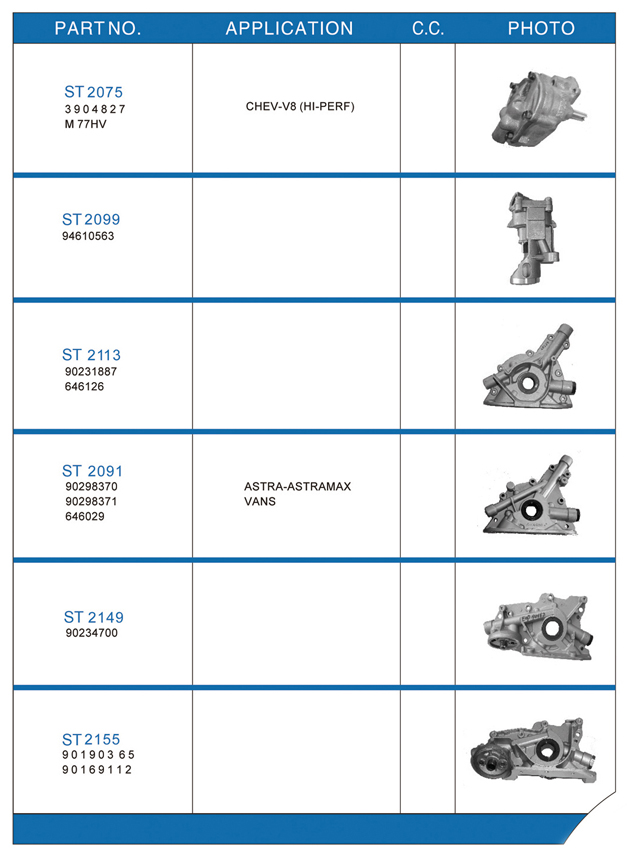 Oil pump list