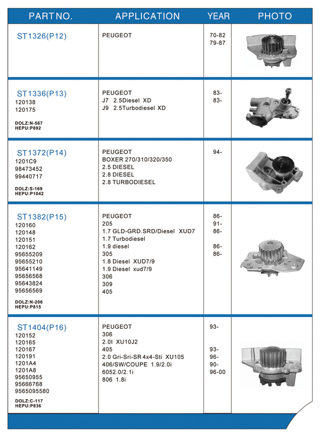 Water pump list