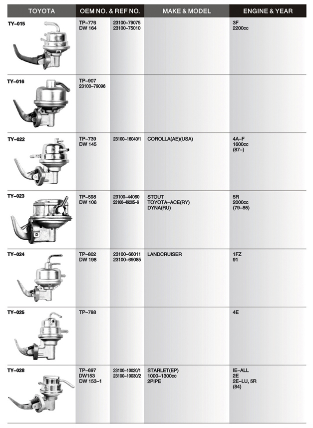 Mechanical fuel pump list