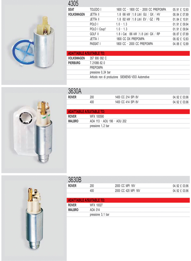 Mechanical fuel pump list