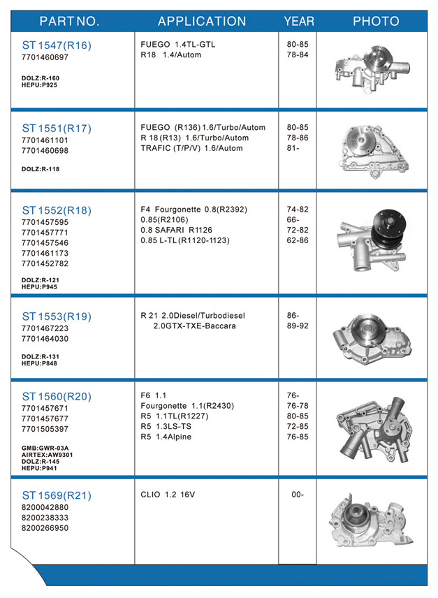 Water pump list