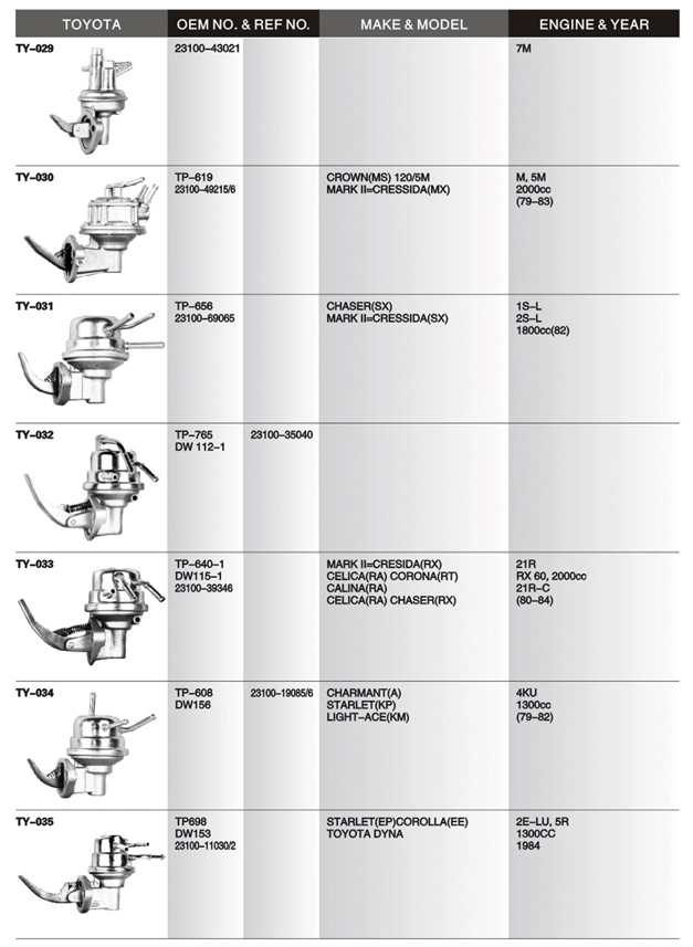 Mechanical fuel pump list
