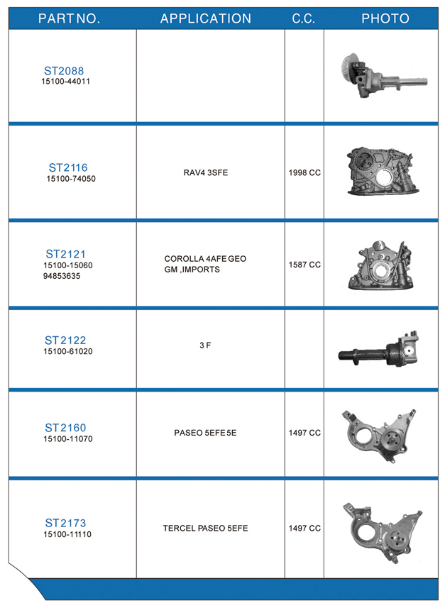 Oil pump list