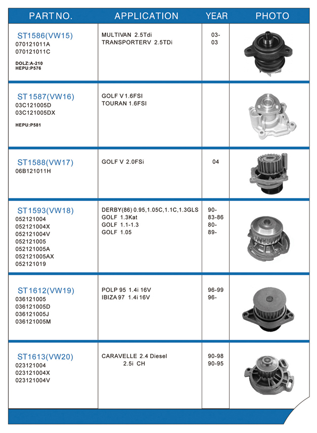 Water pump list