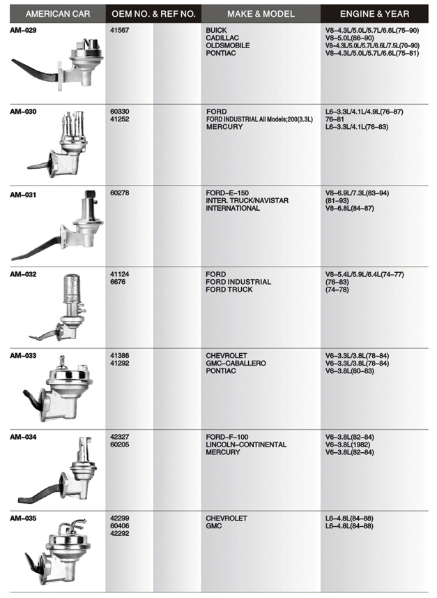 Mechanical fuel pump list