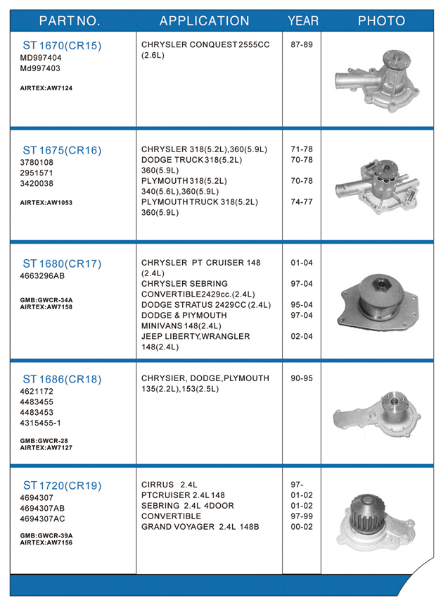Water pump list