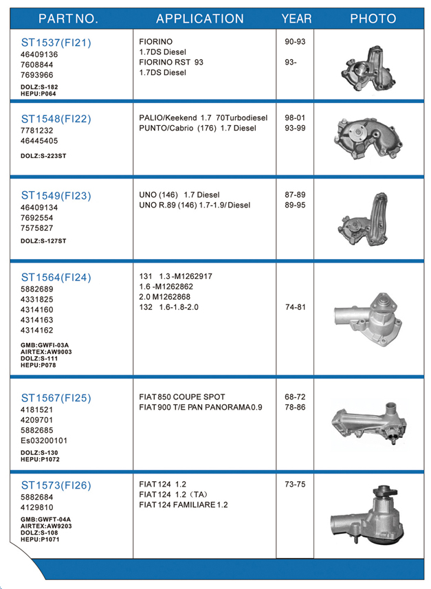 Water pump list
