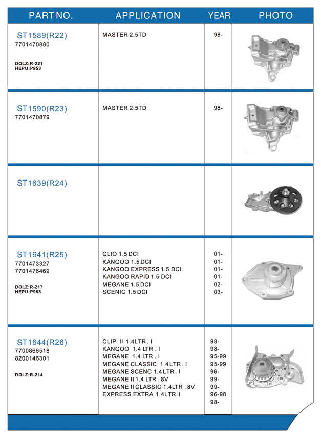 Water pump list