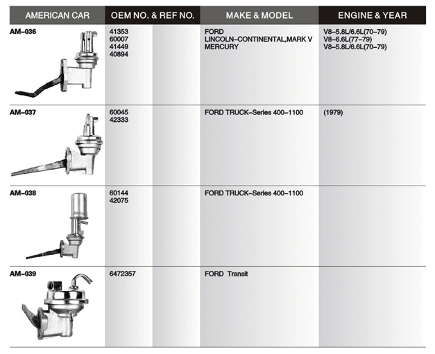 Mechanical fuel pump list