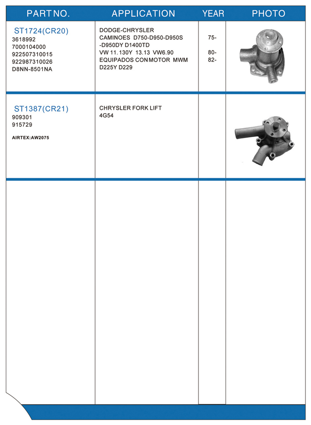 Water pump list