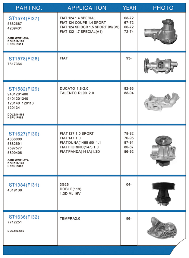 Water pump list