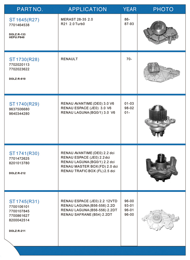 Water pump list
