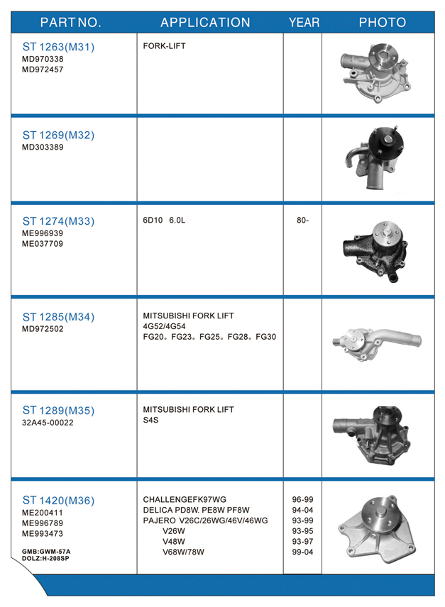 Water pump list