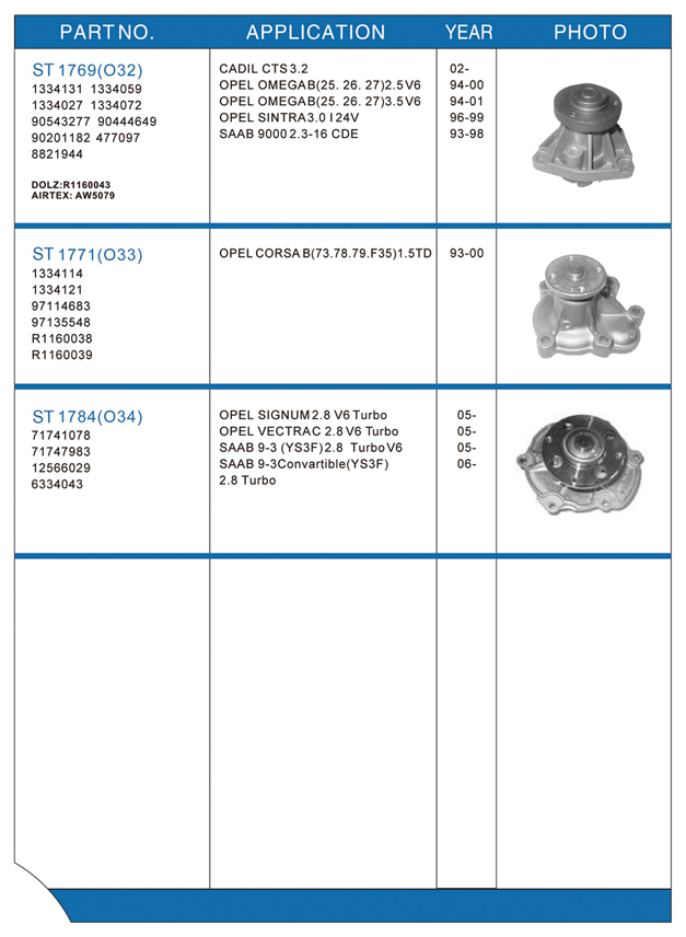 Water pump list
