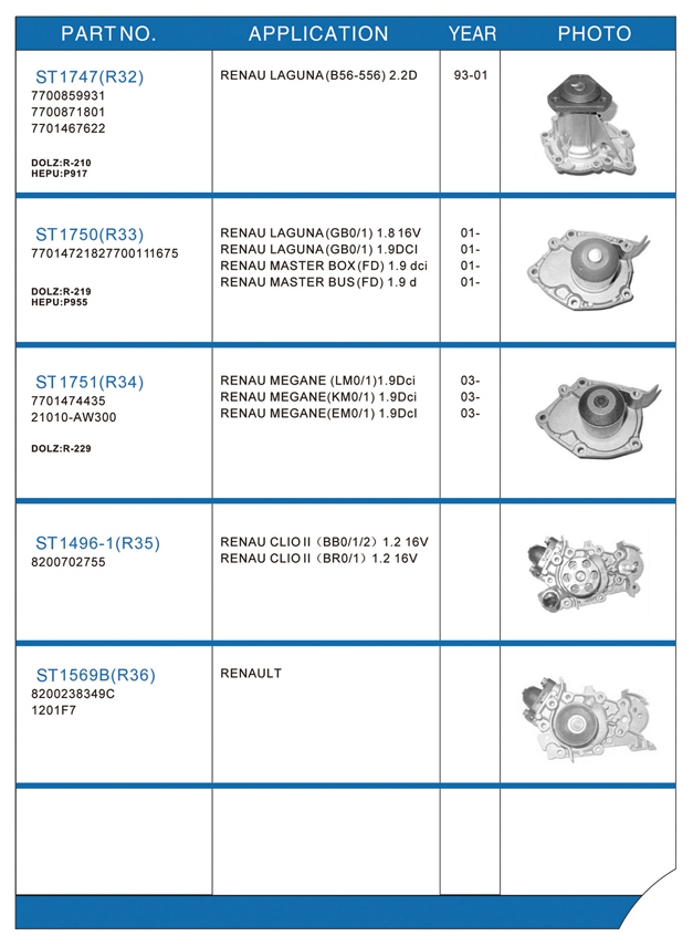 Water pump list
