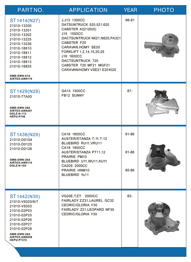 Water pump list