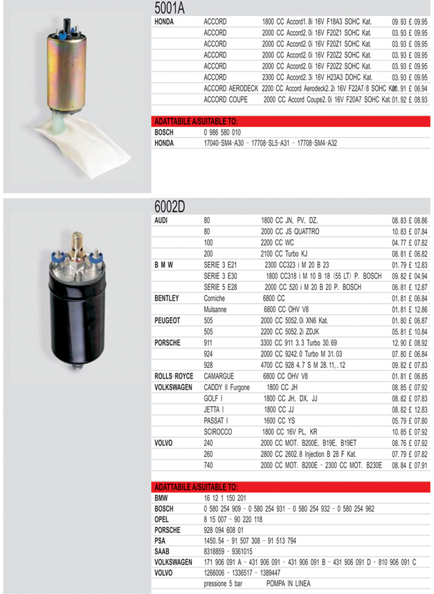 Mechanical fuel pump list