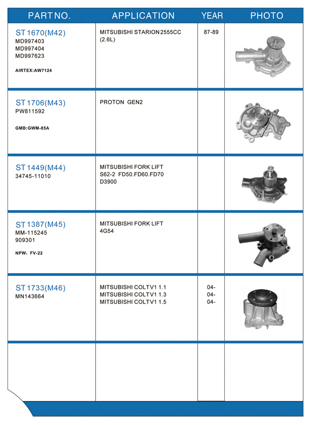 Water pump list