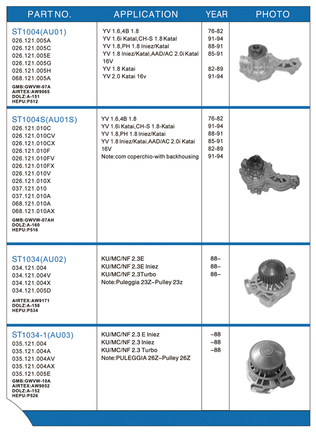 Water pump list