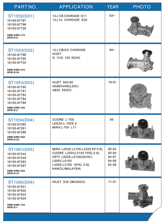 Water pump list