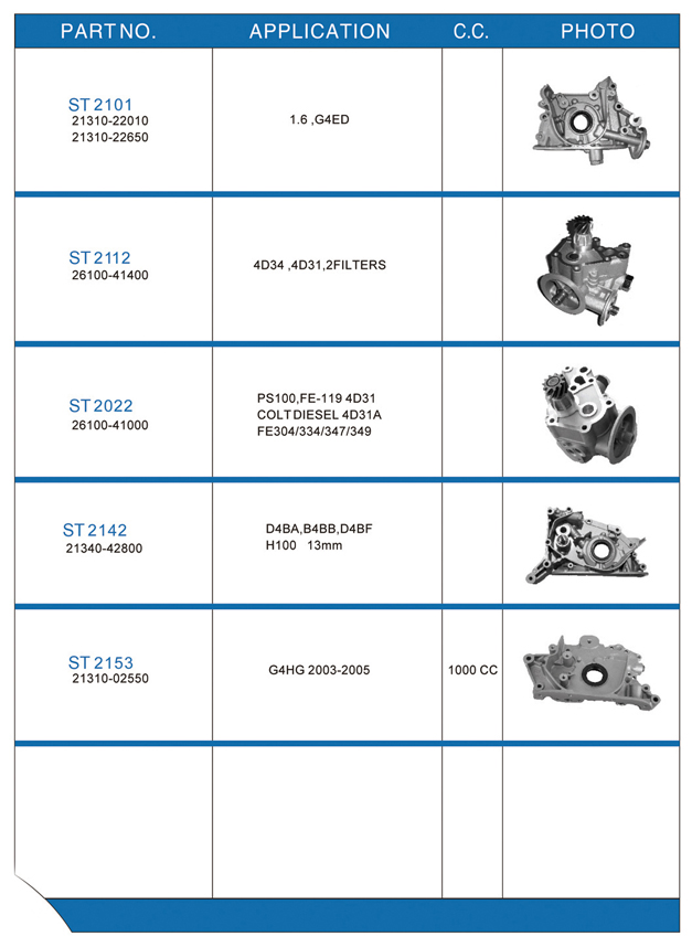 Oil pump list