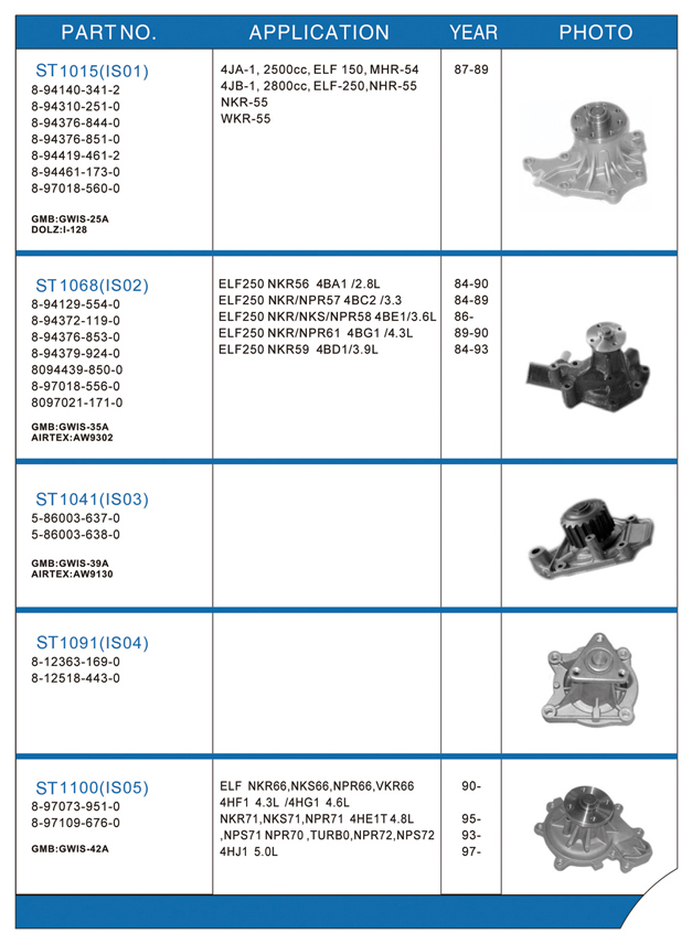 Water pump list