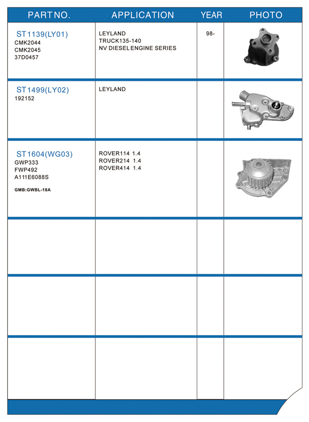 Water pump list
