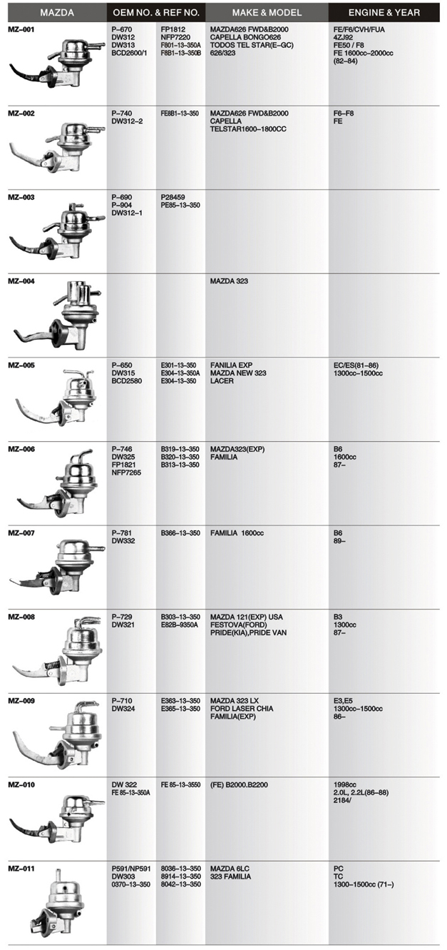Mechanical fuel pump list