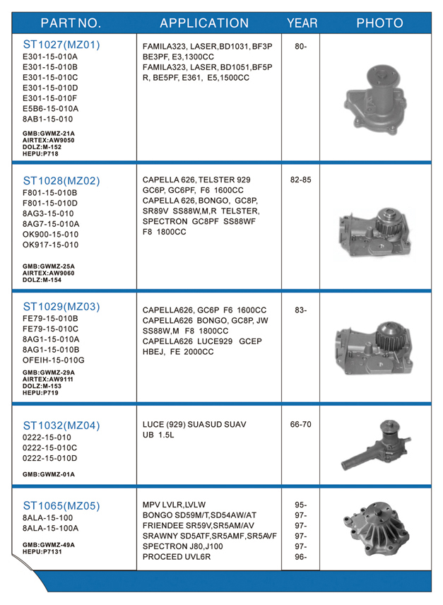 Water pump list