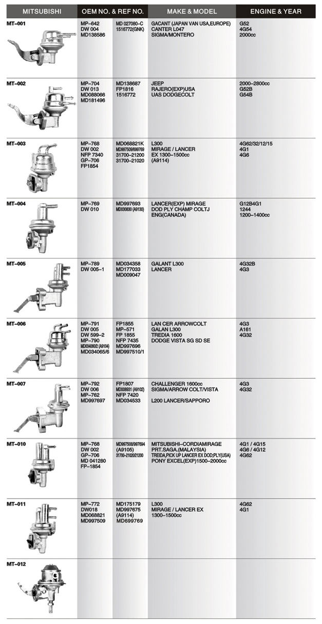 Mechanical fuel pump list