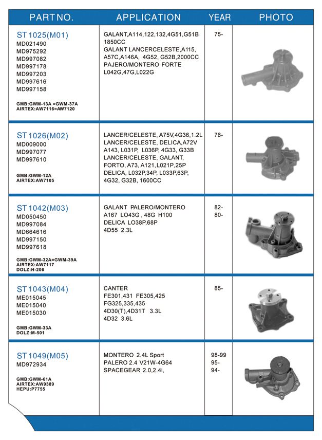 Water pump list