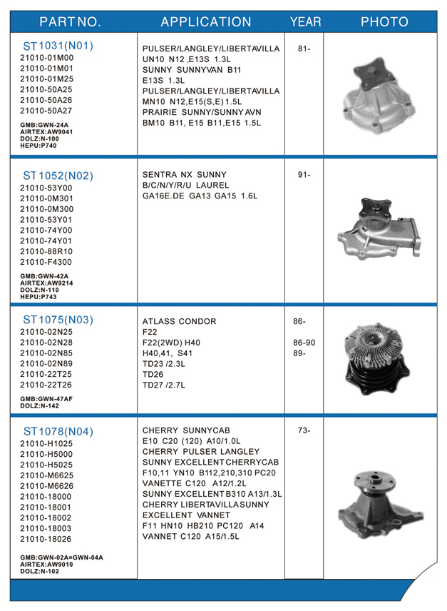 Water pump list