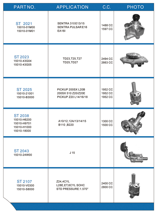 Oil pump list