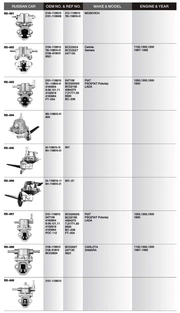 Mechanical fuel pump list